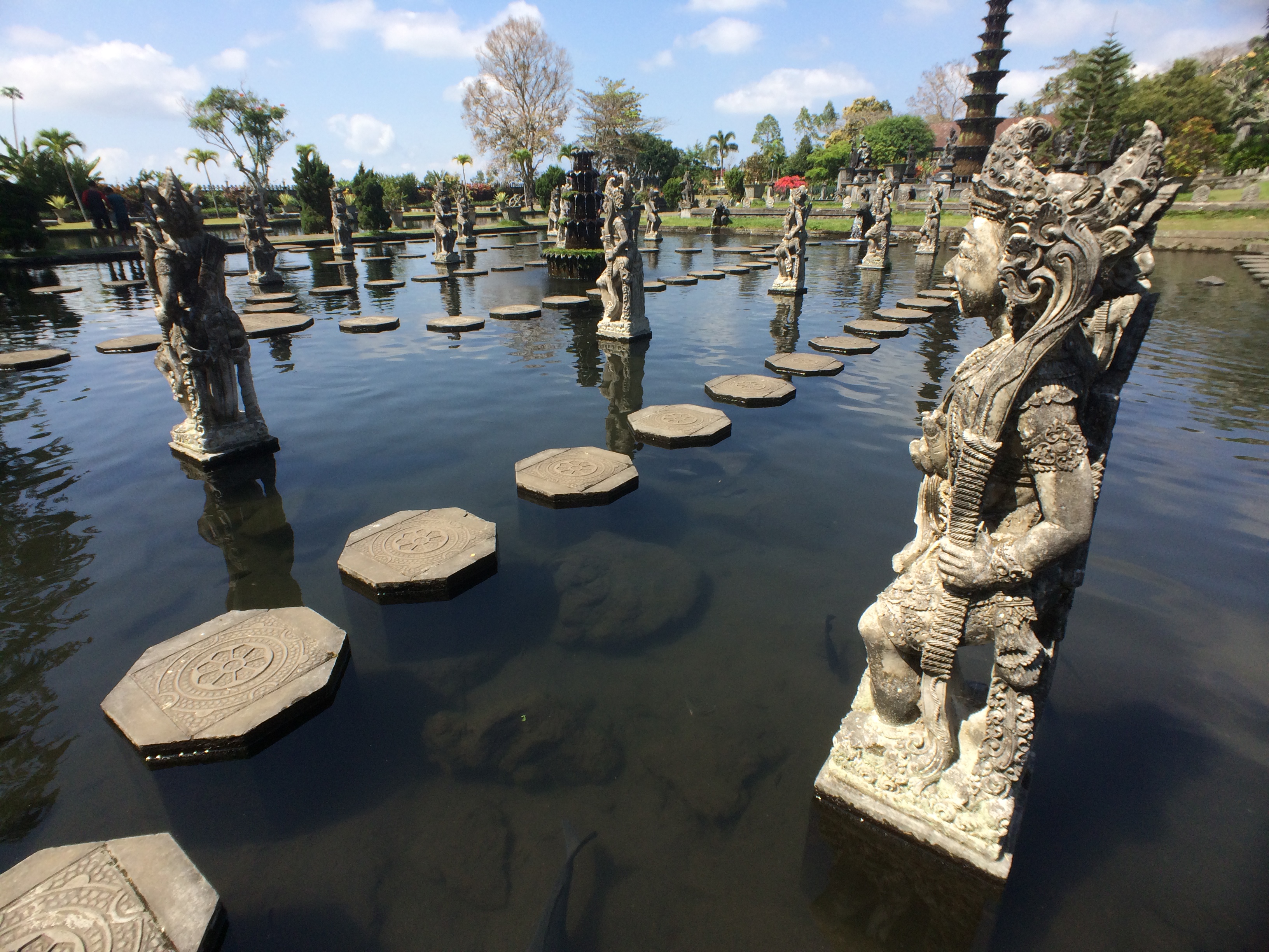Sur le chemin nous faisons une première halte pour visiter le temple Tirta Gangga. Très joli temple avec de beaux bassins où nous en profitons pour faire de quelques photos :