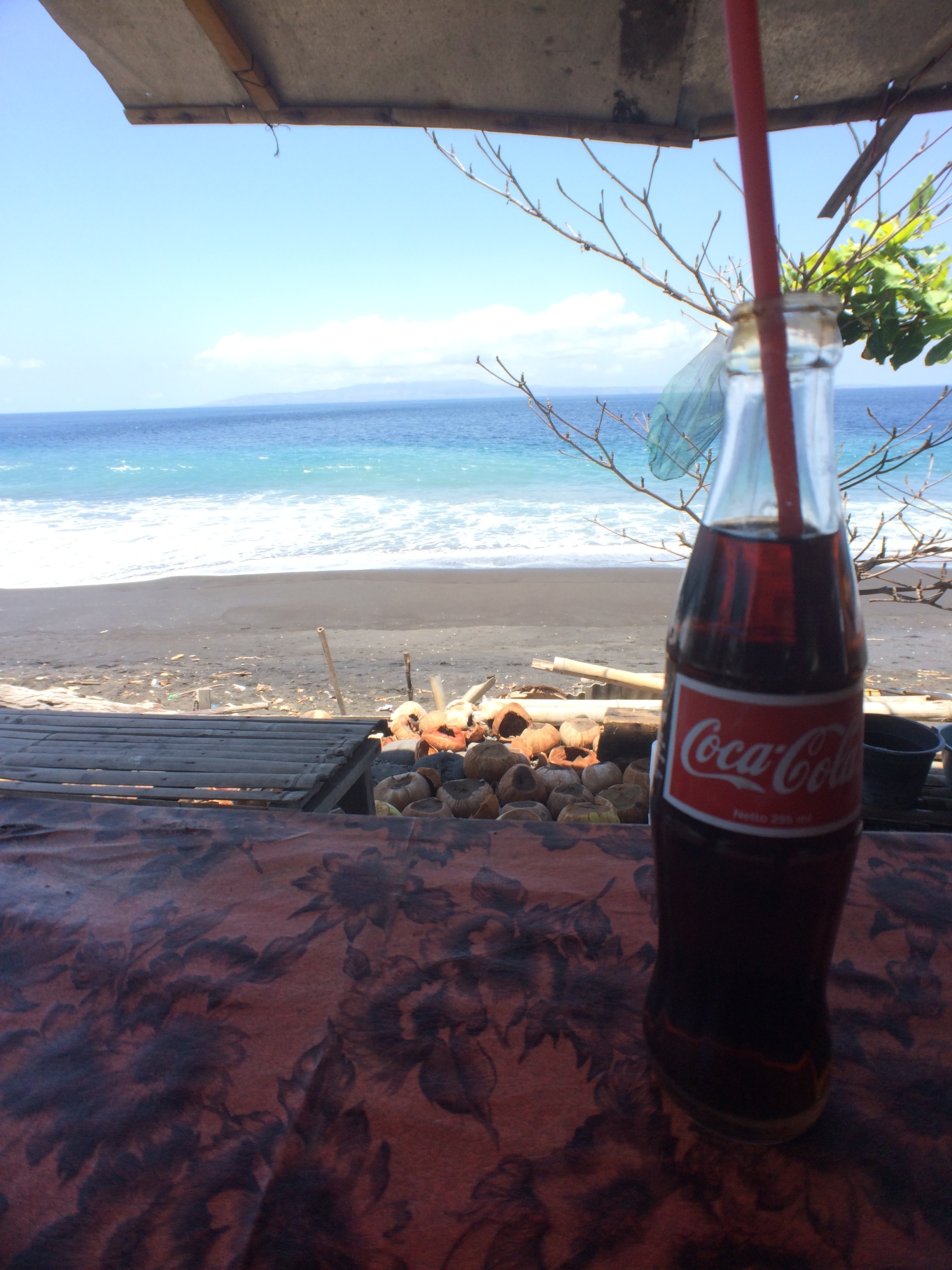 Puis nous reprenons la route (qui nous paraît longue), et au bout d’un (long) moment nous apercevons enfin les 1ers panneaux indiquant Sanur. Ouf ! Après avoir pas mal tourné nous arrivons à notre hôtel, déposons nos affaires dans la chambre et allons savourer notre « welcome drink ». Bon… l’hôtel est très moyen, chambre pas très propre, wifi qui ne fonctionne pas dans les chambres, très bruyant, le responsable nous propose des tickets pour le bateau de demain à des prix exorbitants… Mais bon ce n’est que pour une nuit car demain nous serons sur l’île de Nusa Lembogan ! Alors on relativise 😉