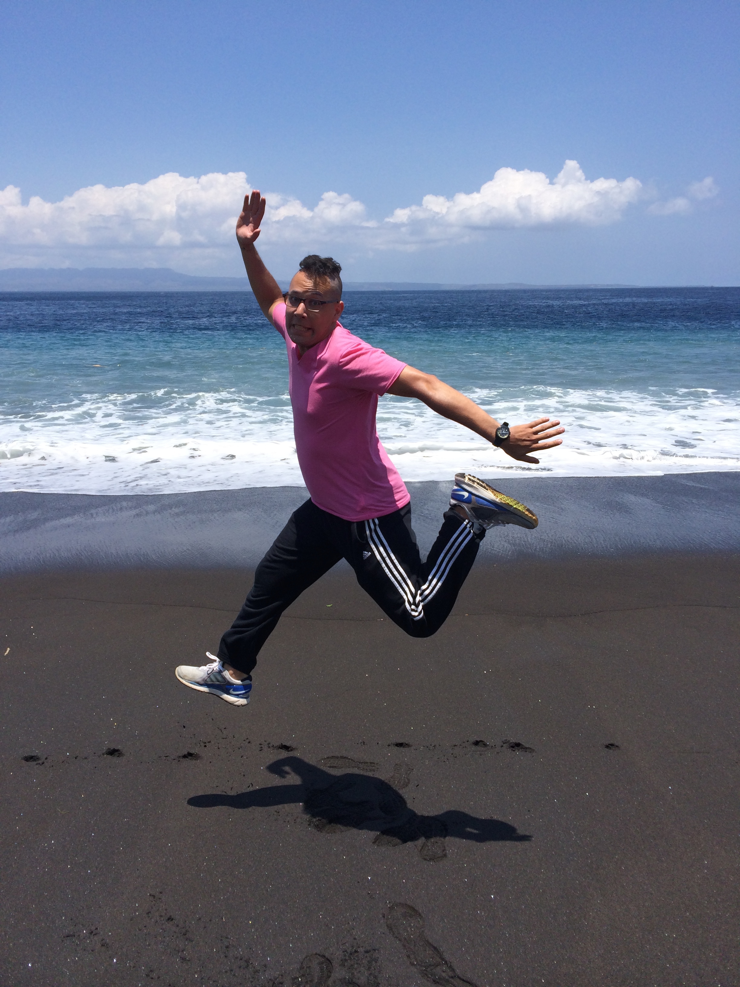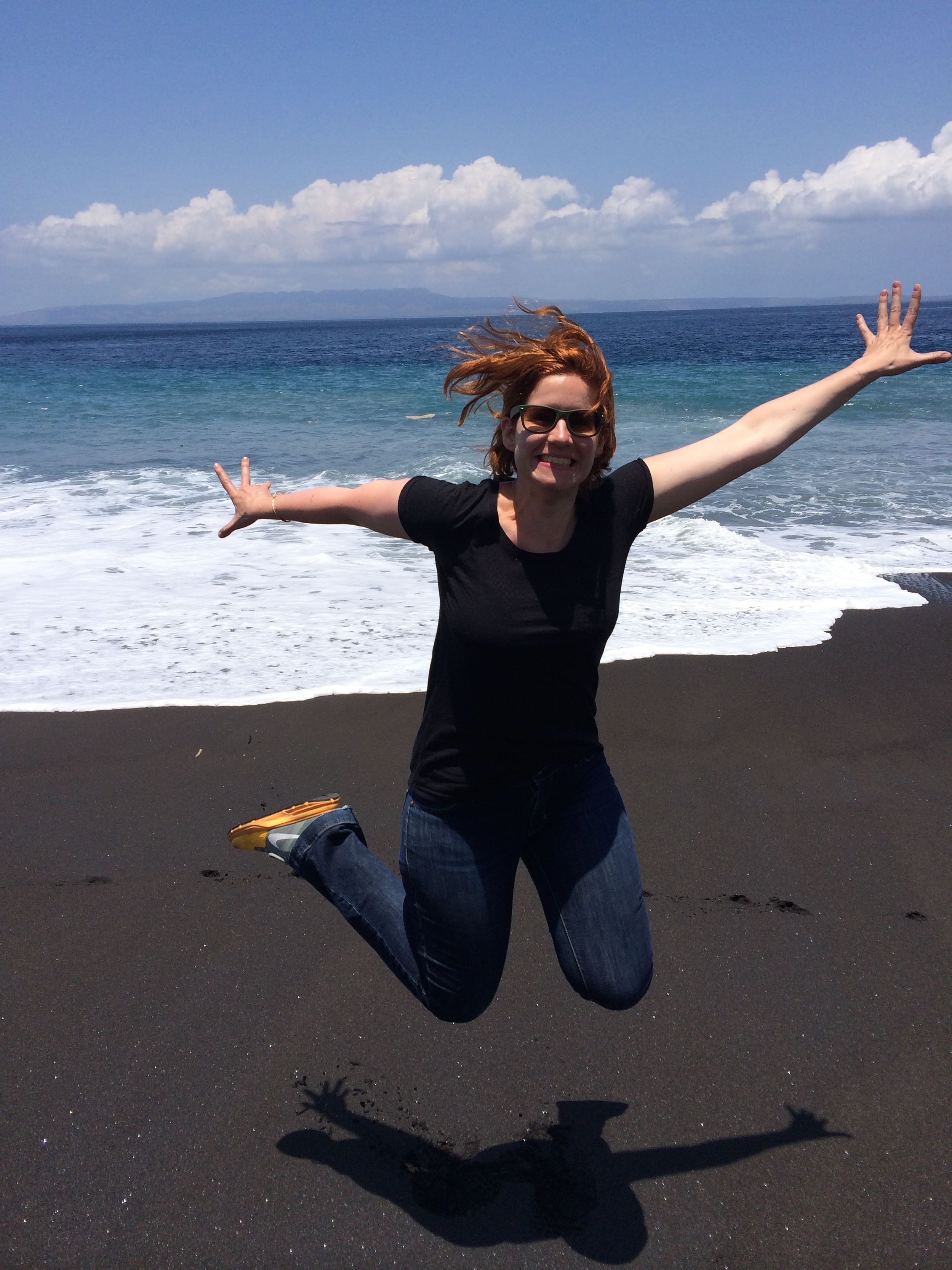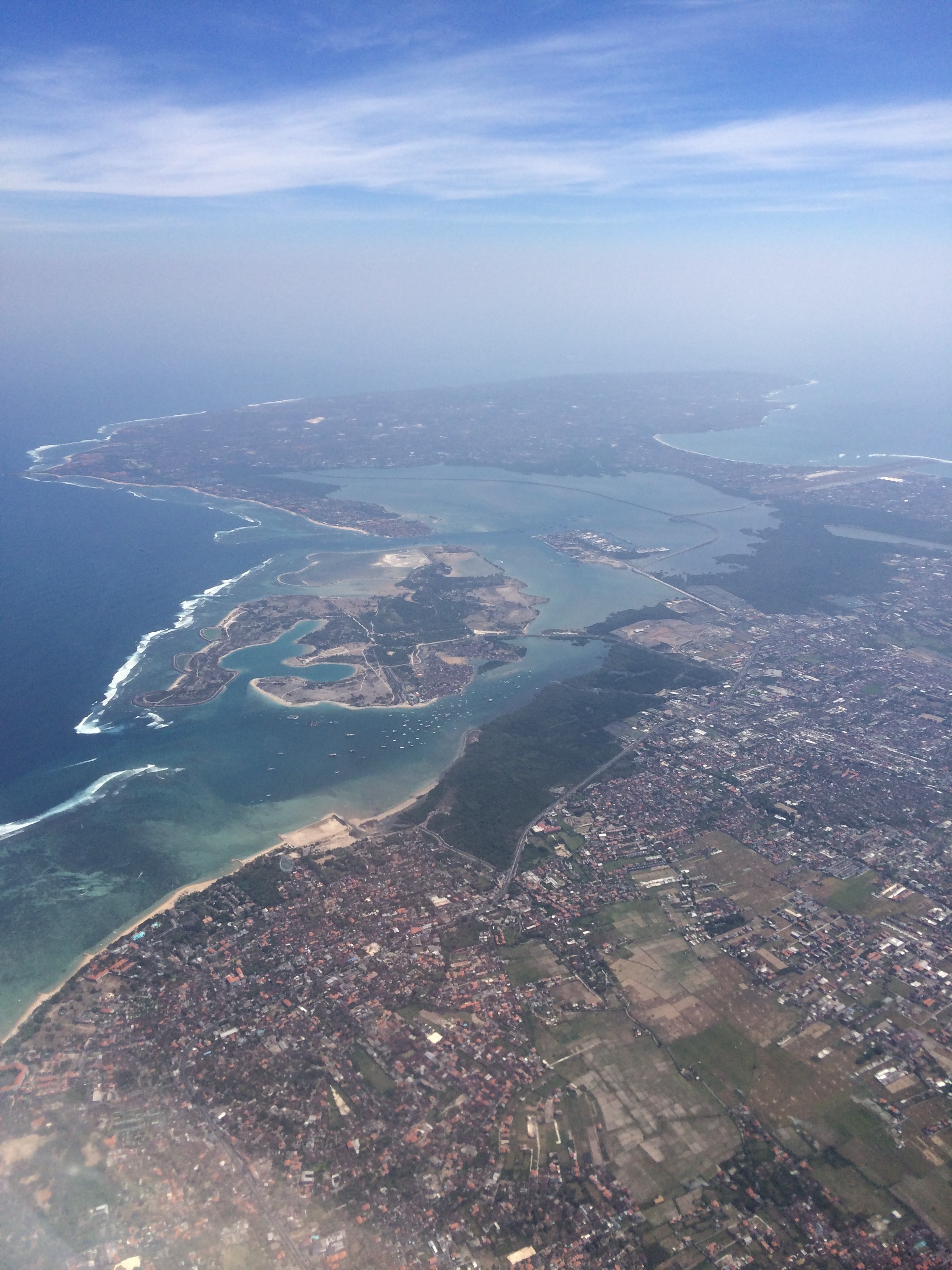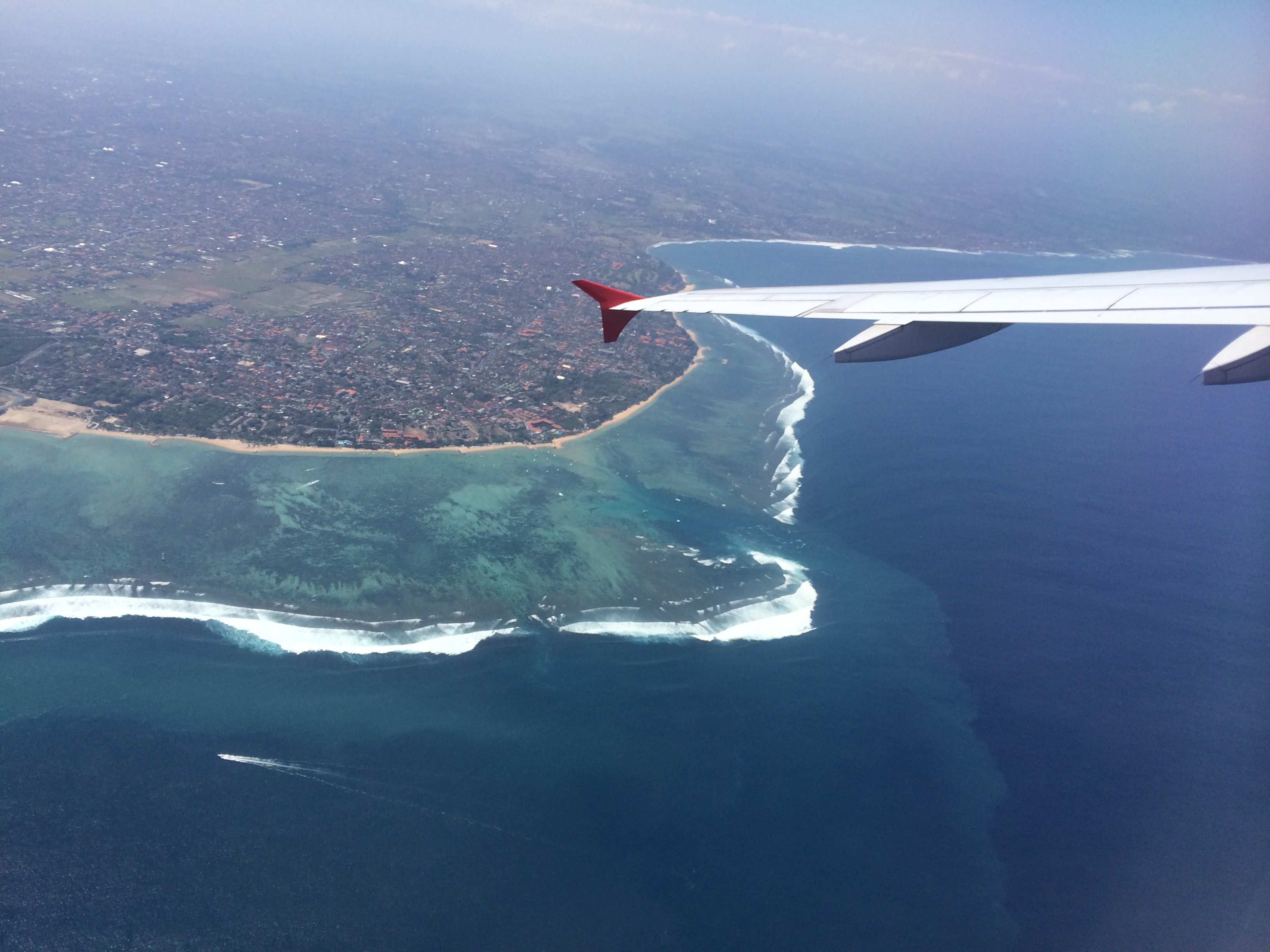 Après un petit déjeuner buffet (bof) on vient nous chercher comme prévu et on nous conduit à l’embarcadère. Formalités, paiement, chargement des bagages, puis c’est à notre tour d’embarquer : on se déchausse, quelques pas dans l’eau et on grimpe dans le bateau ! Nous avons bien fait de prendre l’option « bateau rapide » vu le mal de mer de JMi à Lovina car nous arrivons 30 à 45min plus tard sur l’île sans encombre et découvrons avec joie l’île et ses eaux turquoises.