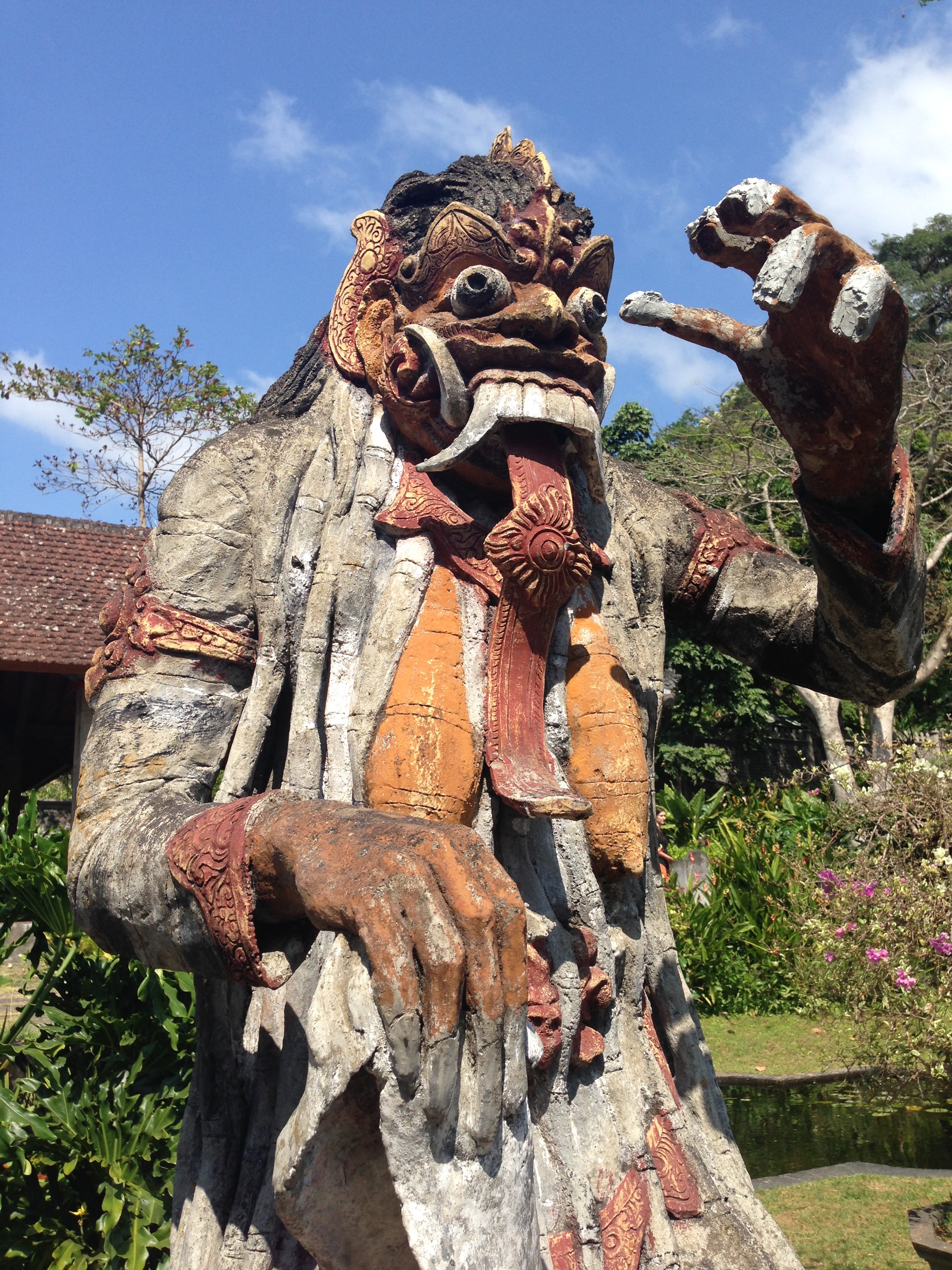 Mais la route qui nous attend est longue (90 km) et il est déjà temps de repartir. Sur le parking où nous avions garé nos scooters JMi se fait complimenter sur sa crête ! Nous apprenons au passage que ça s’appelle une « lola » ici. Terme que nous ré-entendrons plusieurs fois avant de quitter de Bali. Il a eu beaucoup de succès 😊.