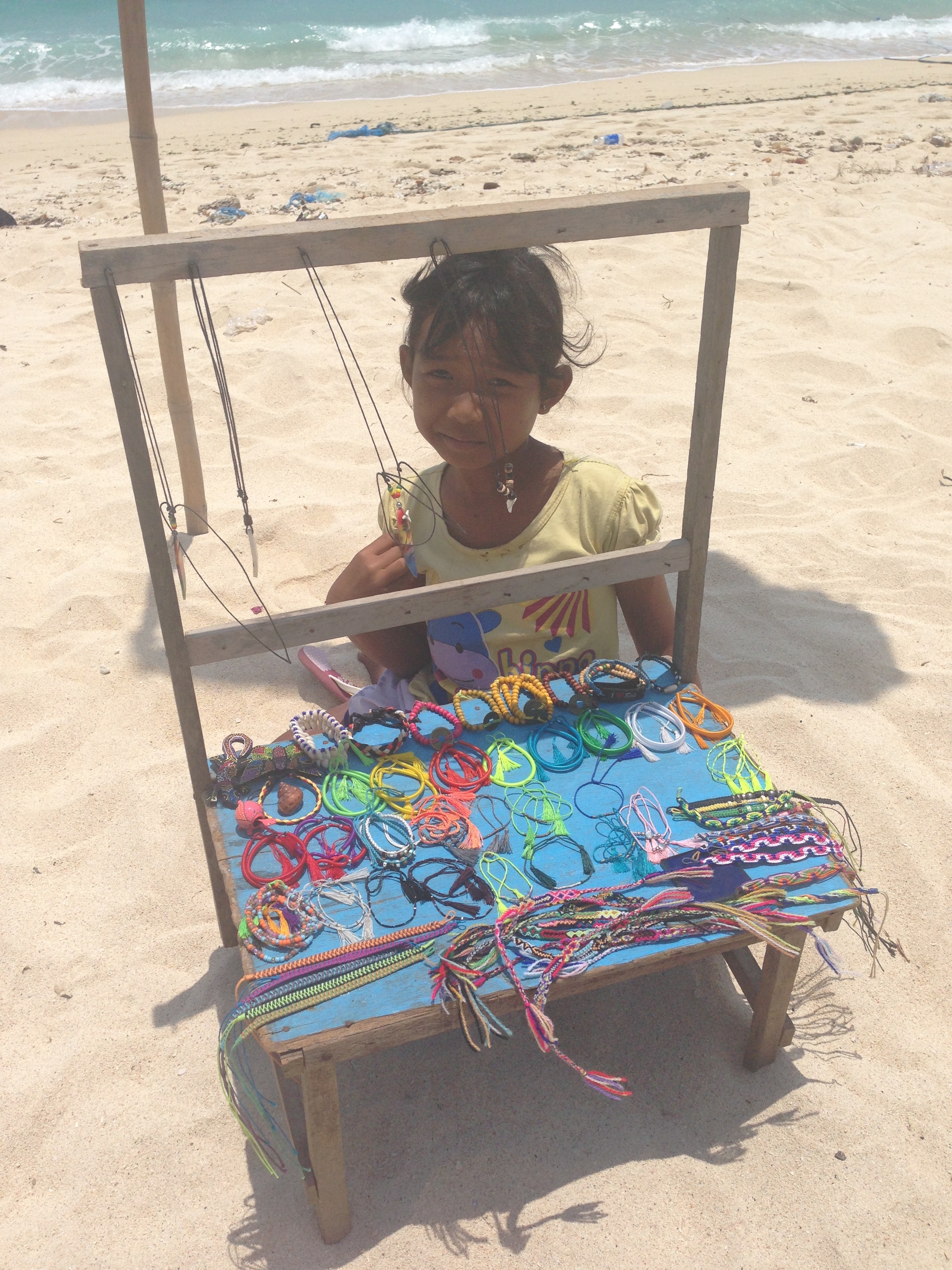 Nous rencontrons aussi de jeunes enfants vendant des bracelets de toutes sortes et LiLi craque sur l’échoppe d’une jolie petite fille.