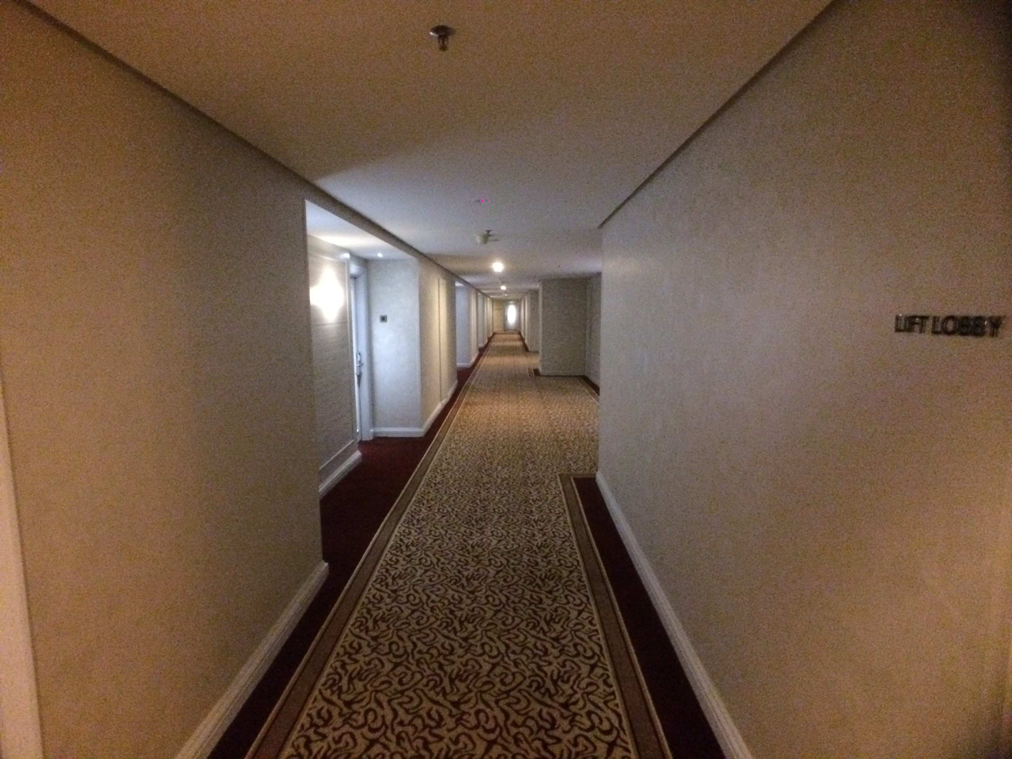 On en profite pour vous donner un petit aperçu de notre hôtel qui semble être un ancien palace en pleine rénovation. Vous remarquerez les couloirs interminables, les ascenseurs matelassés, et … la douchette qui équipe les toilettes  :
