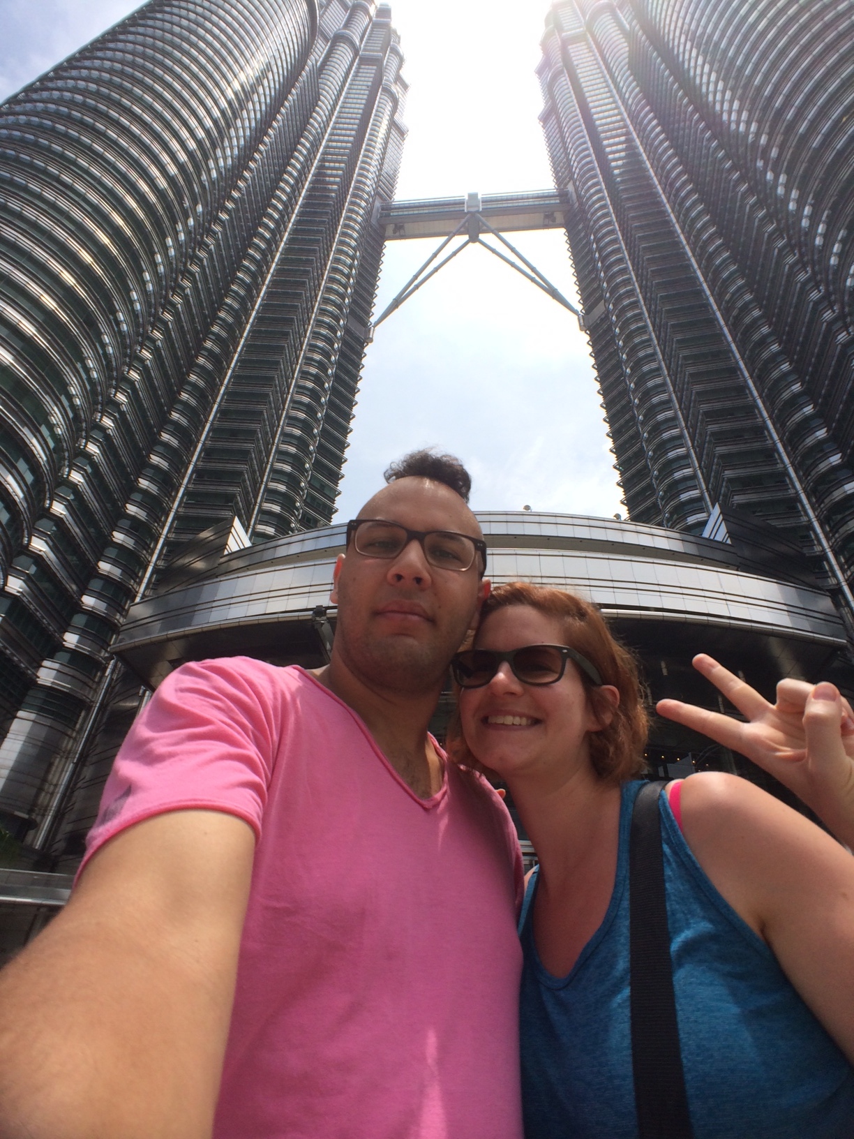 Notre taxi nous dépose au pied des tours et il faut avouer que c’est assez impressionnant. Elles sont grandes, majestueuses, impressionnantes… On se sent vraiment tout petits à côté !