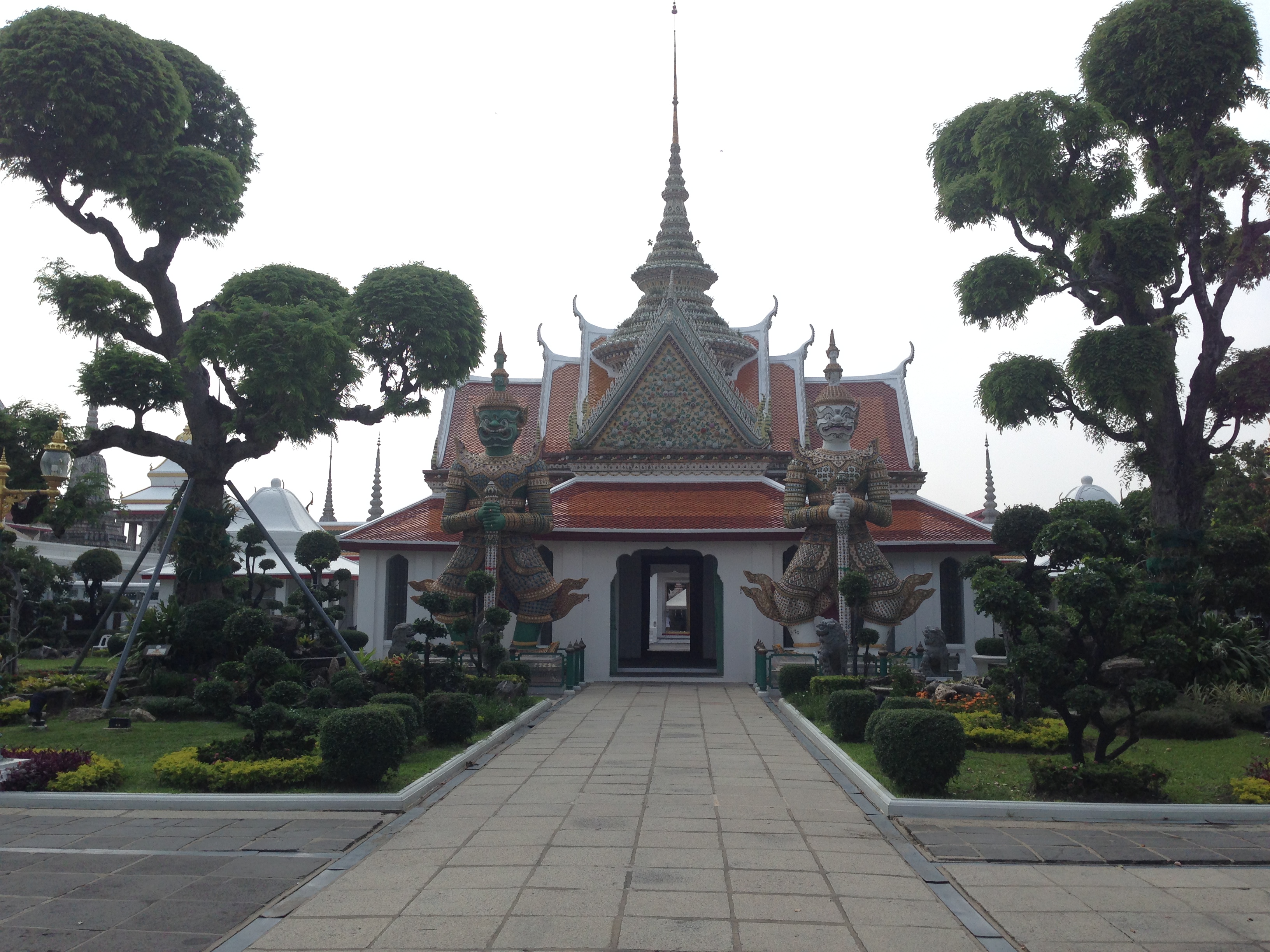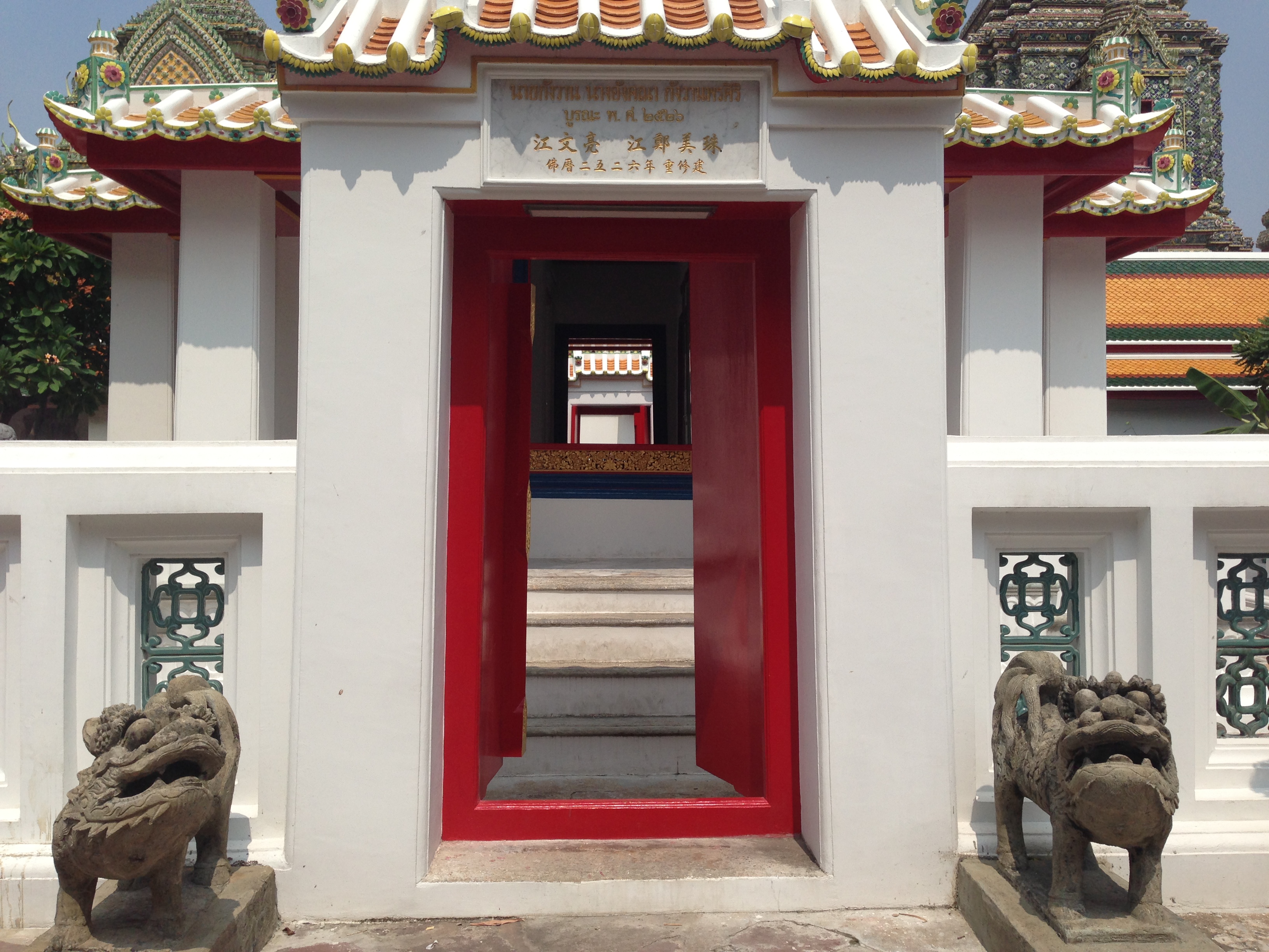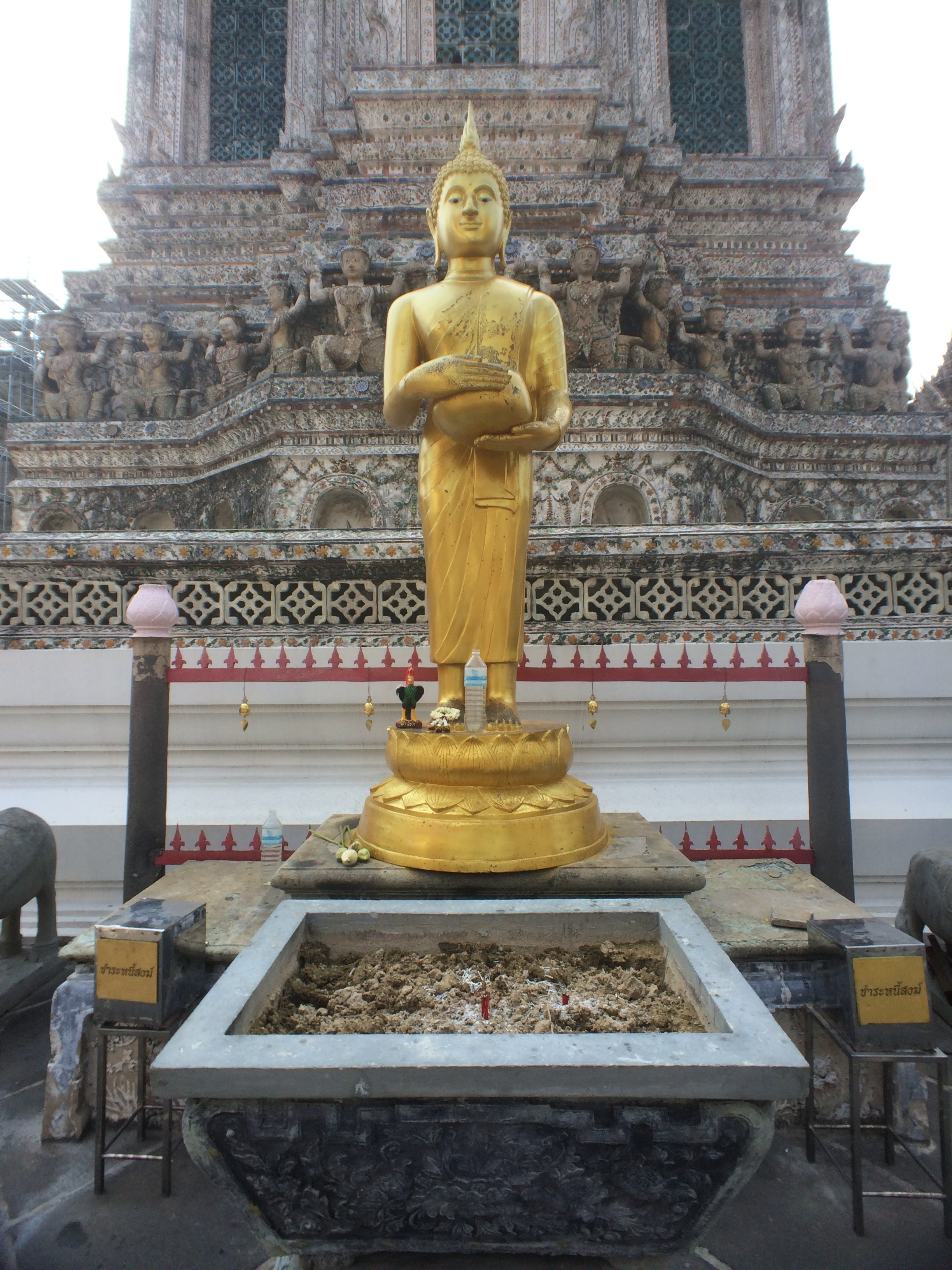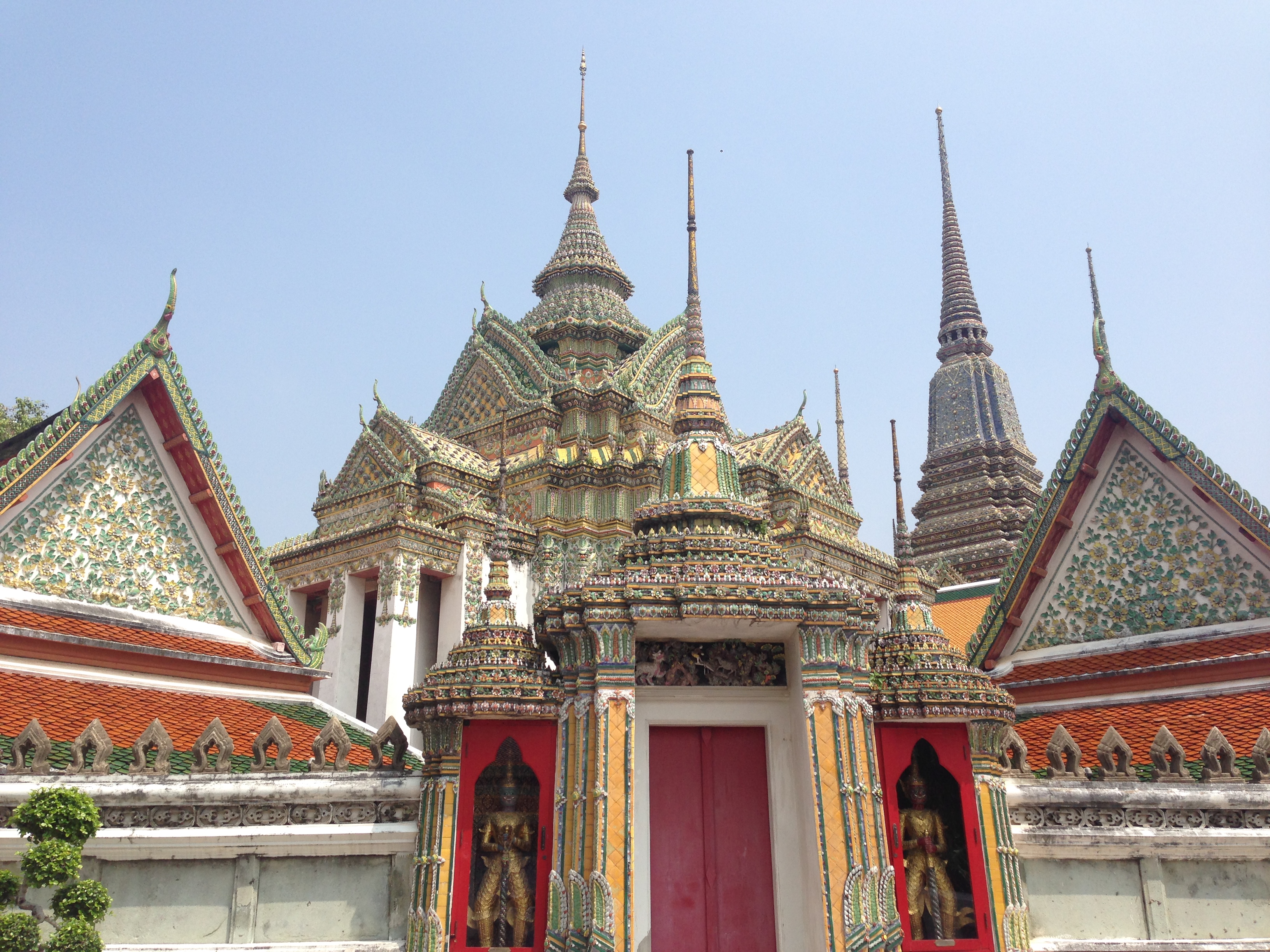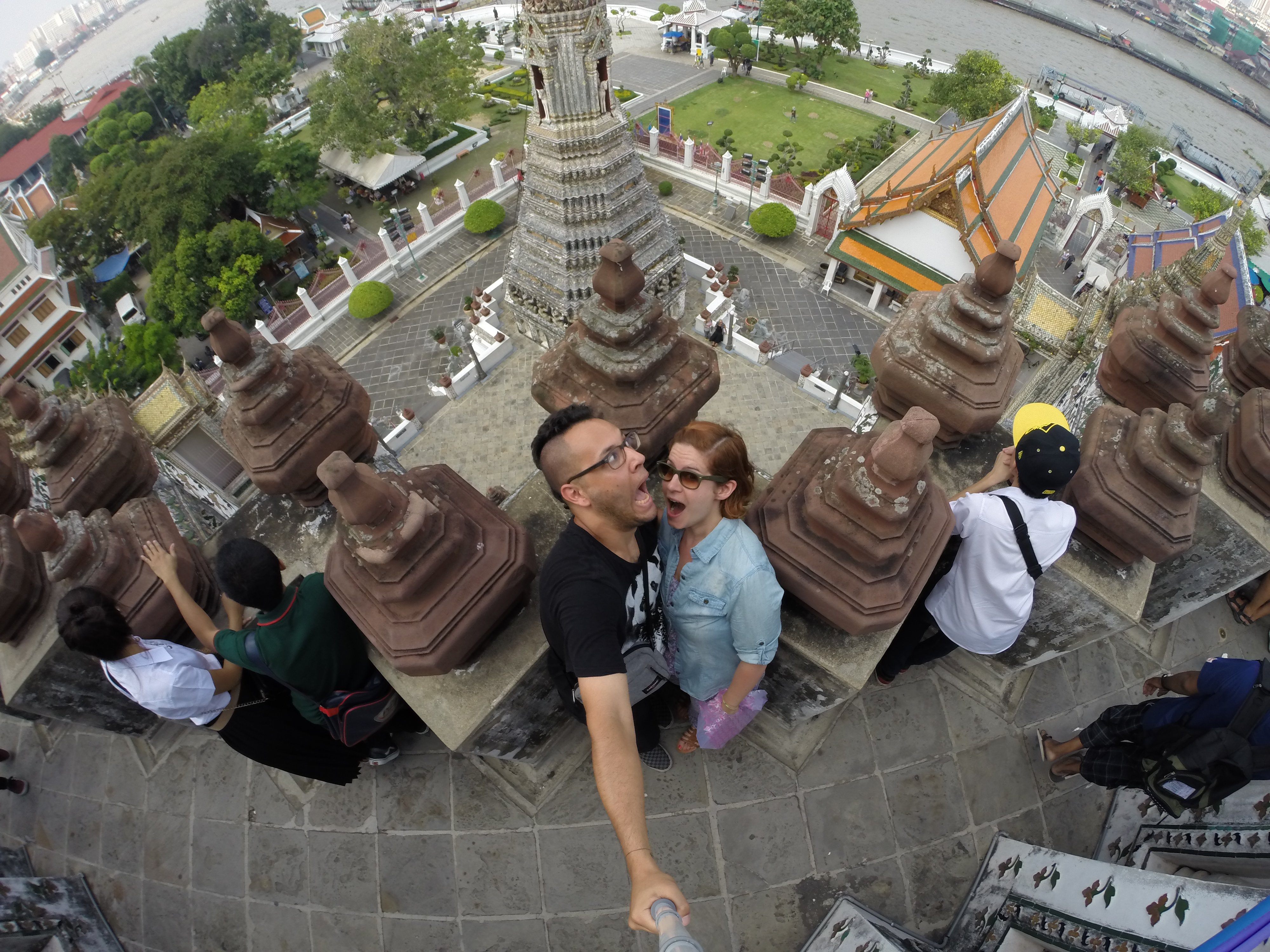 Le Wat Pho est assez impressionnant mais aussi très haut ! Après avoir tenté ( et réussi après quelques tentatives) de lancer une pièce dans le bol du Buddha situé à l’entrée nous commençons l’ascension. On y est jamais allé mais ça nous fait penser aux pyramides du Mexique tellement les marches sont hautes et abruptes (LiLi profite de la visite pour jouer à cache-cache).