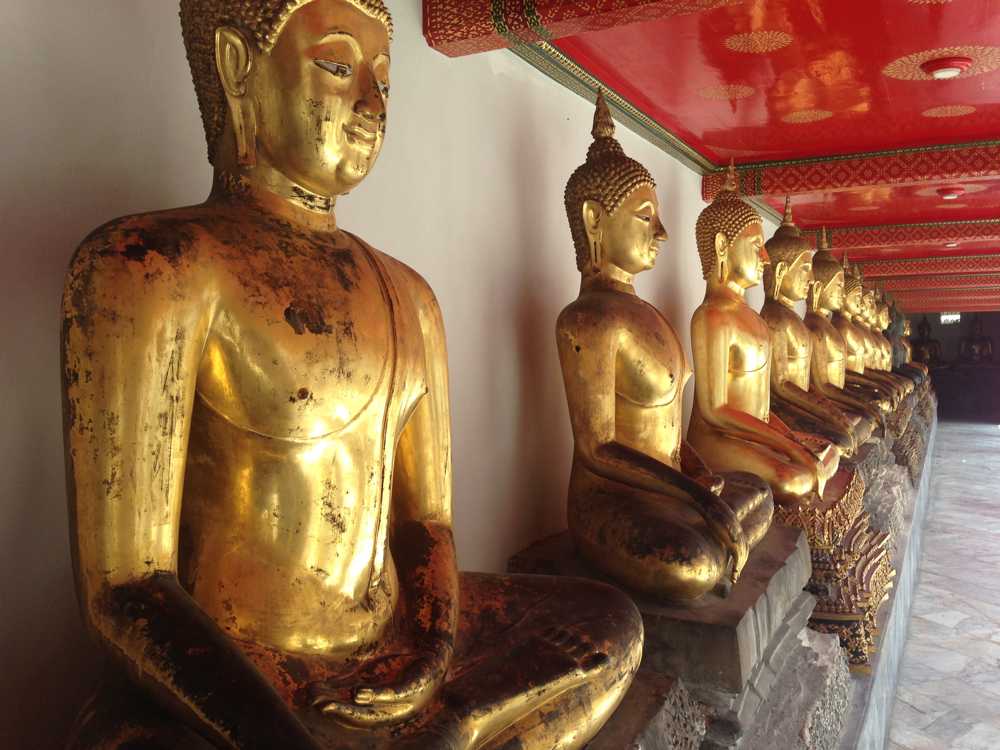 Une fois rassasiés (oui parce qu’en vacances même JMi petit-déjeune) et après avoir laissé nos sacs à la réception, nous partons à la recherche d’un tuk tuk pour aller visiter le Wat Pho et son fameux Buddha couché que nous n’avions pas vu lors de notre premier passage. Nous en trouvons un rapidement et très très bon marché.